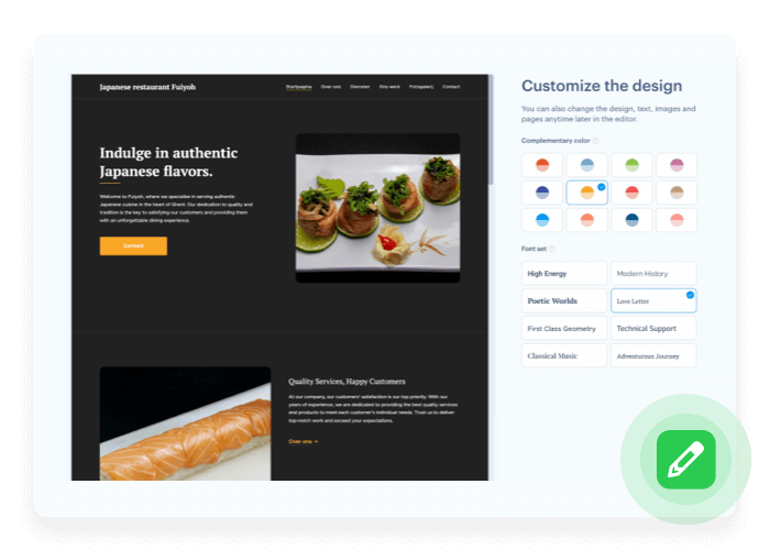 Customise the website's colours and fonts to suit your style. This way, you can make your website all your own.