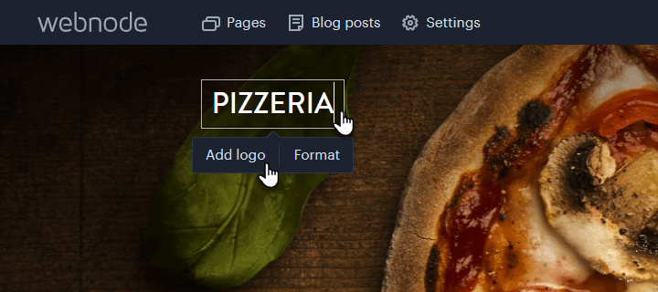 - Click on the logo area at the top left. Here you can add your own text or logo by clicking Add Logo.