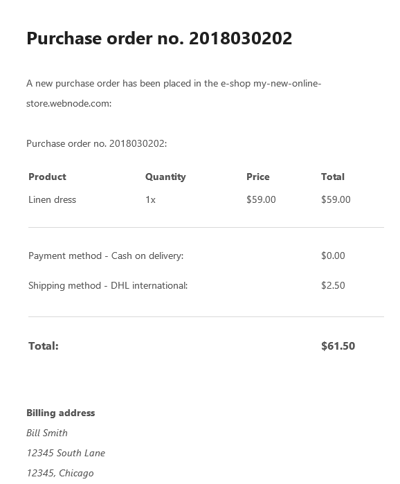At the same time, you will receive a notification of the order to your email address. The notification will also have a link that will allow you to go directly to the order on your online store.