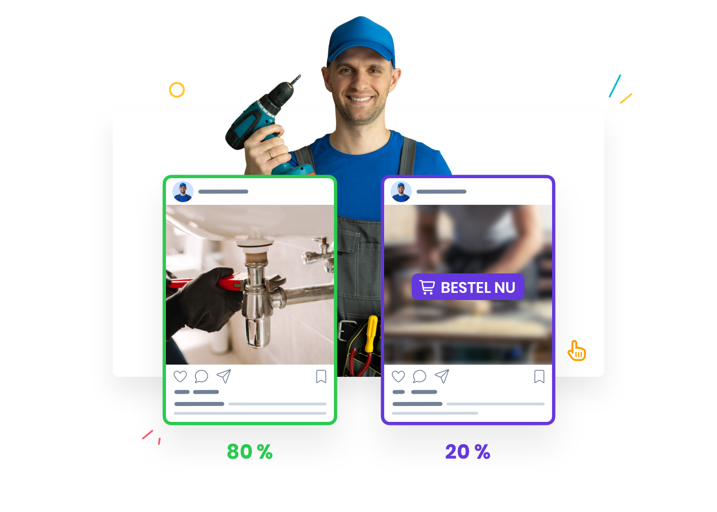 20% van je content is rechtstreekse promotie: acties, lanceringen, concrete aanbiedingen. Hoe meer mensen jouw tips nuttig vinden, hoe groter de kans dat ze blijven hangen en uiteindelijk klant worden.