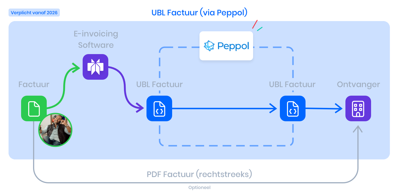 Je hoeft dus niet te weten bij welke software of provider je klant zit. Het Peppol-netwerk zorgt dat je factuur automatisch op de juiste plek terechtkomt.